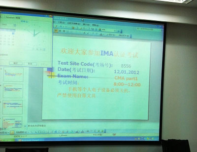 8点整,正式开考。我们的IMA高级副总裁Dennis先生和IMA北京代表处代表Lisa女士担任本次考试的全程监考。可见,IMA对于CMA中文新纲的首度考试非常之重视。在经过了紧张的4个小时之后,同学们纷纷走出考场,除了做题的一点疲惫外脸上更多的还是轻松的表情。