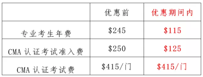 IMA协会决定将于2017年2月3日至2017年2月22日,对CMA新专业考生进行优惠活动,专业考生年费5折,CMA认证考试准入费5折,共节省255美金。折扣代码可以拨打高顿免费咨询电话:4006008011,或点击此链接,填写表单领取!